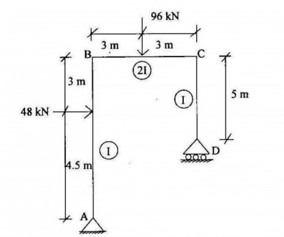 我试图解决一个框架使用斜率偏转法。确认解决方案,我试着解决相同的使用单位荷载法。然而,我从两种方法获得不同的结果。谁能看穿我的解决方案,并指出我的错误,因为我一直与这几天。