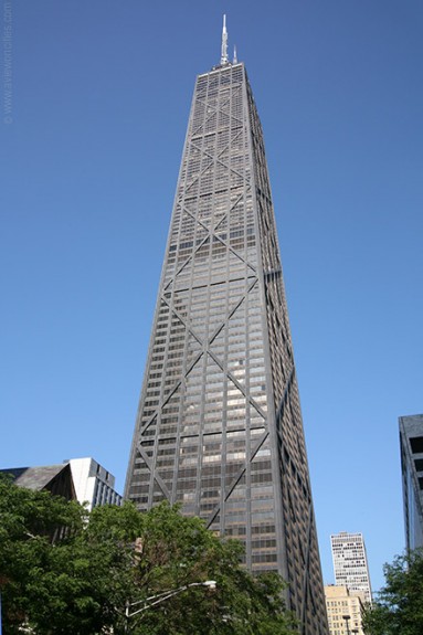 约翰·汉考克100层楼斜撑钢暴露出来。